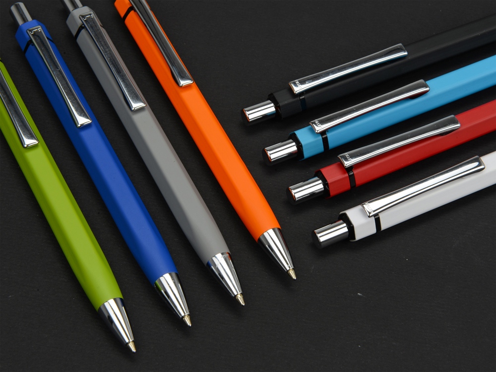 Изящная металлическая ручка Six с нажимным механизмом идеально подойдет в качестве промо-сувенира. Этот качественный пишущий инструмент точно придется по душе вашим клиентам! Модель представлена в различных цветах.