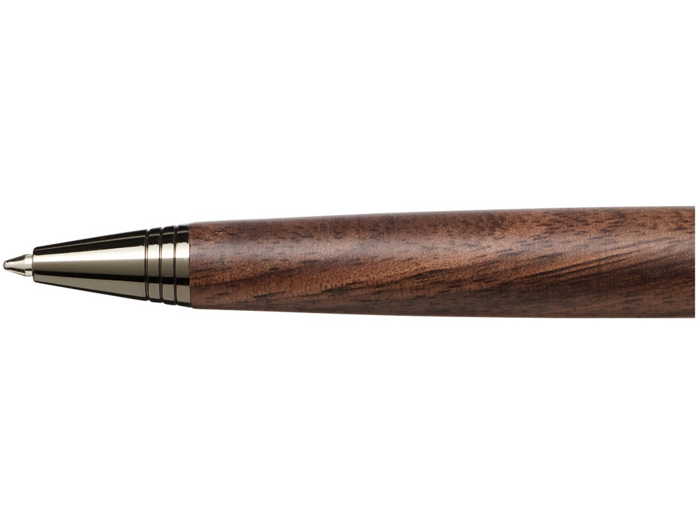 Шариковая ручка с поворотным механизмом и деревянным корпусом, изготовленная из латуни с хромированным покрытием, в подарочной коробке LUXE.