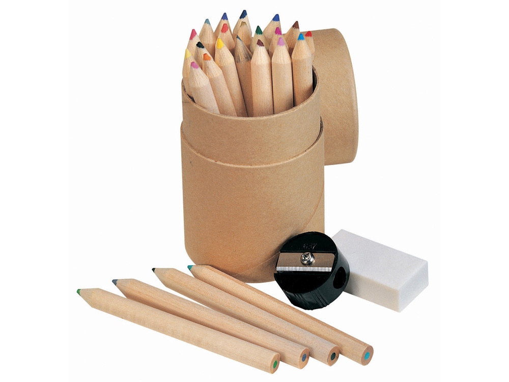 Комплектность 24 цветных карандаша, резинка и точилка в картонной цилиндрической коробке