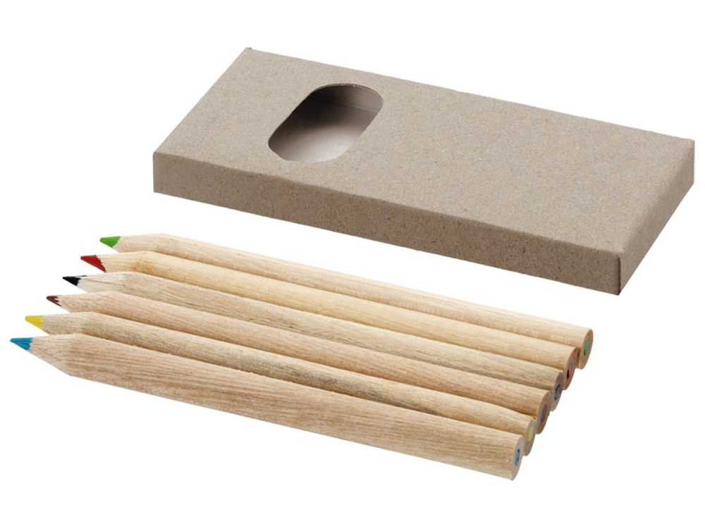 Набор включает в себя 6 цветных карандашей из натурального дерева. На картонную коробку и карандаши можно нанести логотип организации.