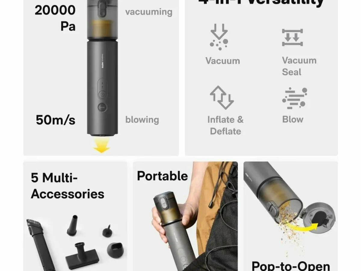 Особенности HOTO AutoCare Air Duster & Vacuum это компактная капсула, совмещающая функции пылесоса, воздуходувки, насоса и вакууматора; 5 насадок: щётка, груминг, насадка стакан, щелевая насадка, надувной переходник (swim ring nozzle) и мягкое сопло (subtle air nozzle), что делает капсулу максимально универсальной; 3 мощности всасывания; моющийся HEPA фильтр