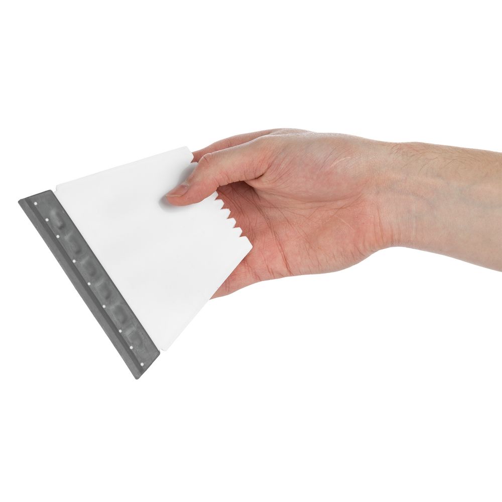 Все 4 стороны скребка рабочие: резиновый водосгон с широкой стороны, зубья-ледорубы с узкой и две скошенные грани по бокам.Не имеет индивидуальной упаковки.