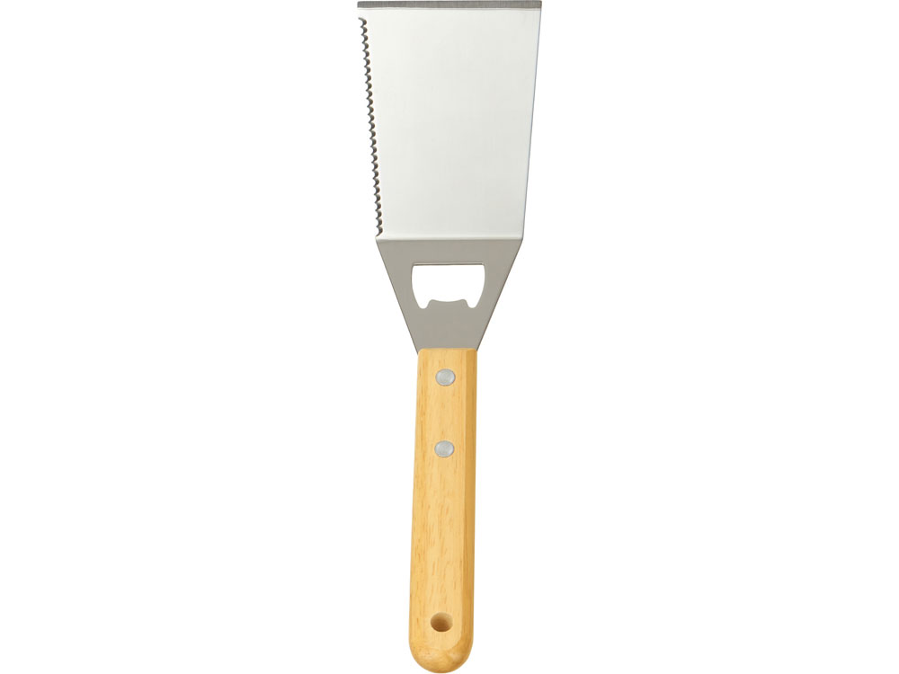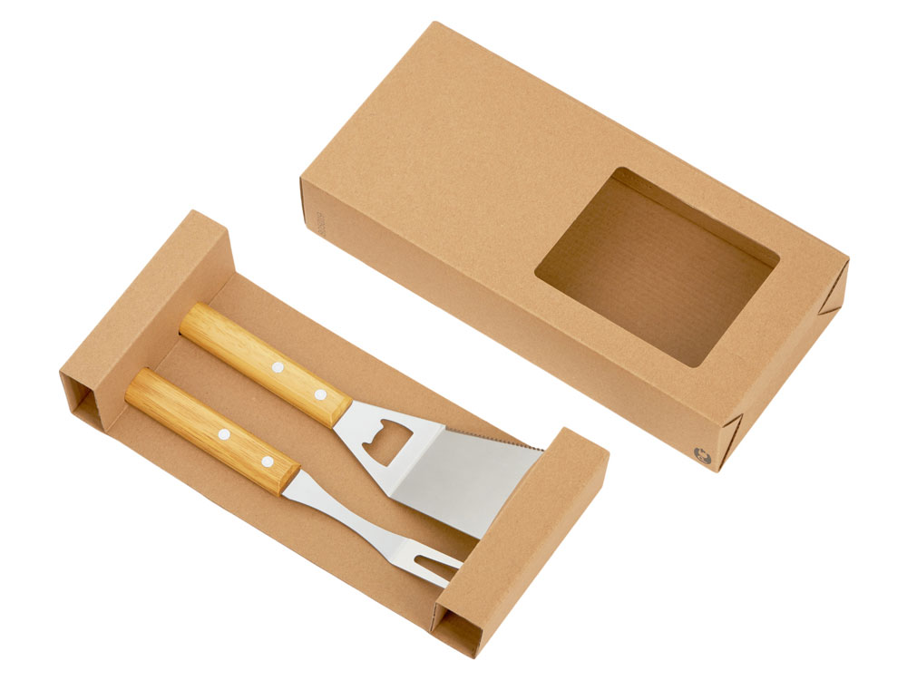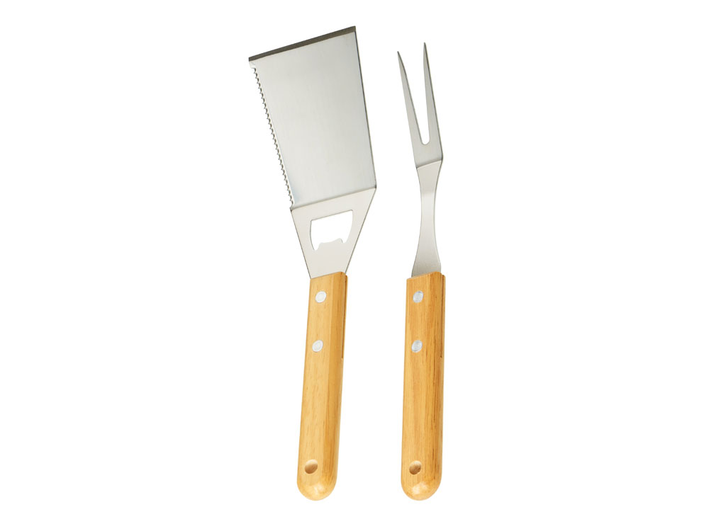 Набор аксессуаров для барбекю Grill Master с деревянными ручками состоит из двух предметов: лопатки и вилки. Лопатка также имеет дополнительную функцию - открывалки для бутылок. Набор поставляется в крафтовой коробке с окошком.