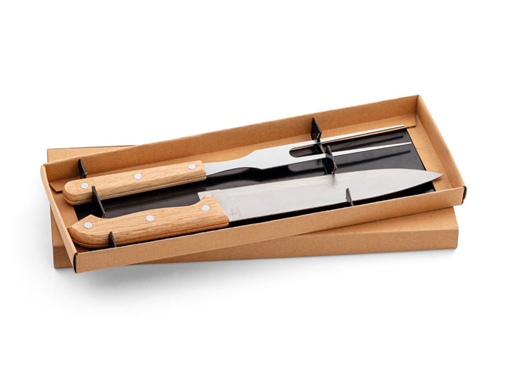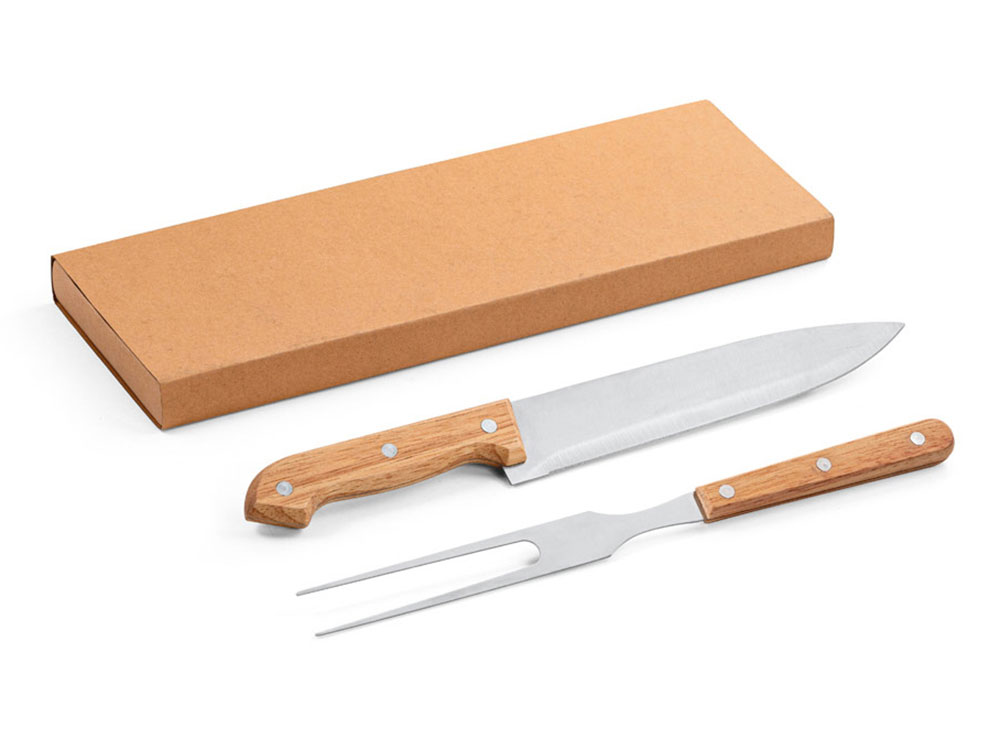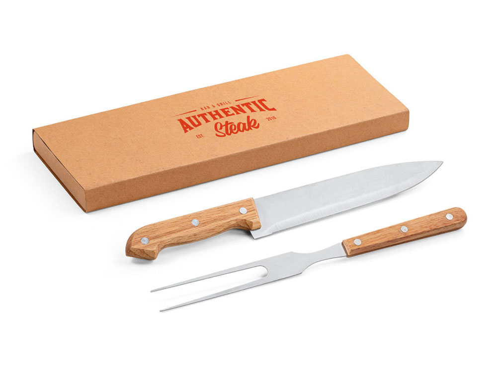 Набор из 2 предметов для барбекю из бамбука и нержавеющей стали.