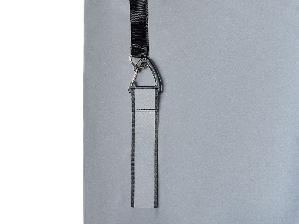 Сумка для покупок из светоотражающей ткани обеспечивает дополнительную защиту в темное время суток. Прочные ручки длиной 68 см. Металлическое д-кольцо на хлястике предусмотрено для крепления ремувок с вашим логотипом.