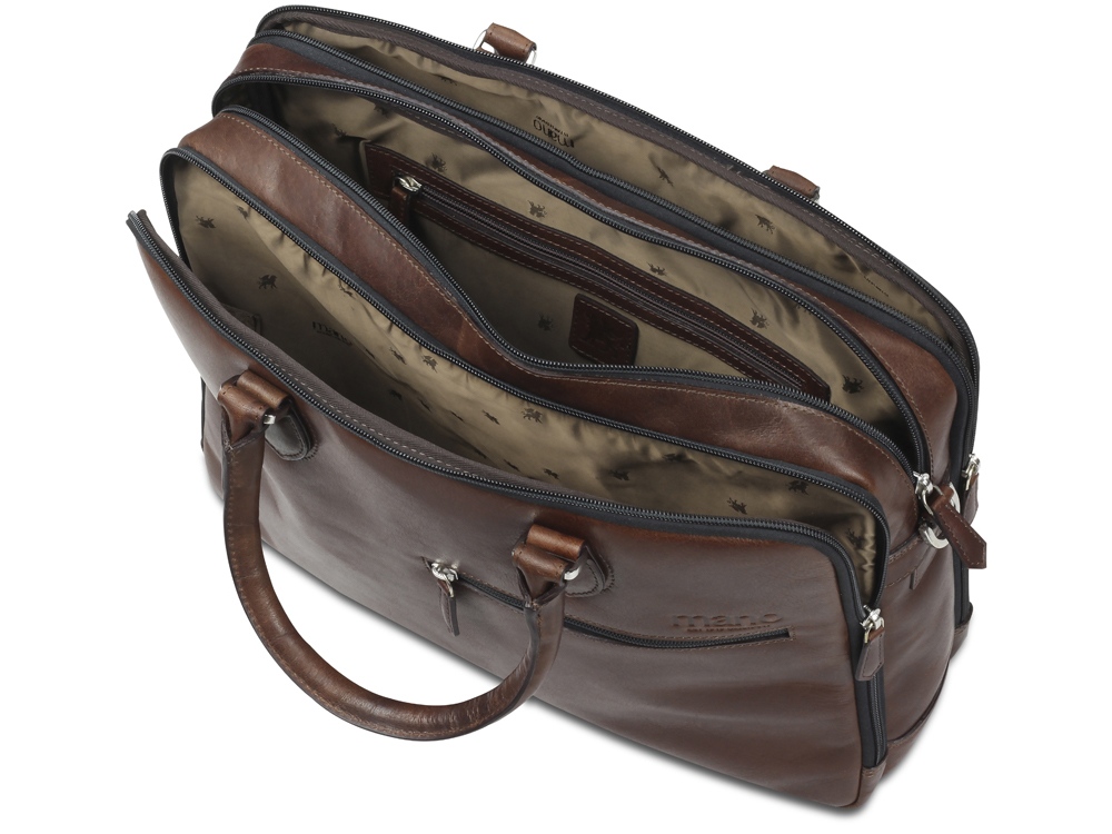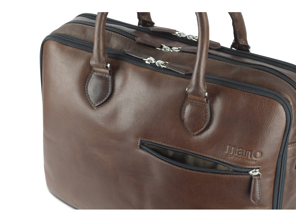 Коллекция DON VALENTINO является воплощением современного молодежного стиля. Все изделия коллекции изготовлены вручную из высококачественной натуральной кожи буйвола в насыщенном коричневом цвете. Элегантное тиснение и дерзкая застежка-молния подчеркивают индивидуальный стиль коллекции. MANO 1919 ®. Бизнес-сумка M191940439 Эстетика и практичность: бизнес-сумка M191940439 отличается элегантным стилем и удобной организацией внутреннего пространства. Вместительные отделения и дополнительные карманы обеспечивают идеальное хранение необходимых вещей. Бизнес-сумка станет незаменимым компаньоном для мужчин, которые ценят удобство и комфорт. Благодаря классической форме и насыщенному коричневому цвету бизнес-сумка будет привлекательным спутником в повседневной жизни. Размеры: 31 см (В) x 41.5 см (Ш) x 10 см (Г) Материал: натуральная кожа буйвола Особенности: • 3 основных отделения на молнии с внутренним карманом на молнии • Передний карман на молнии • Карман для мобильного телефона и 2 отделения для ручек • Задний карман на молнии • Съемный регулируемый плечевой ремень до 155 см