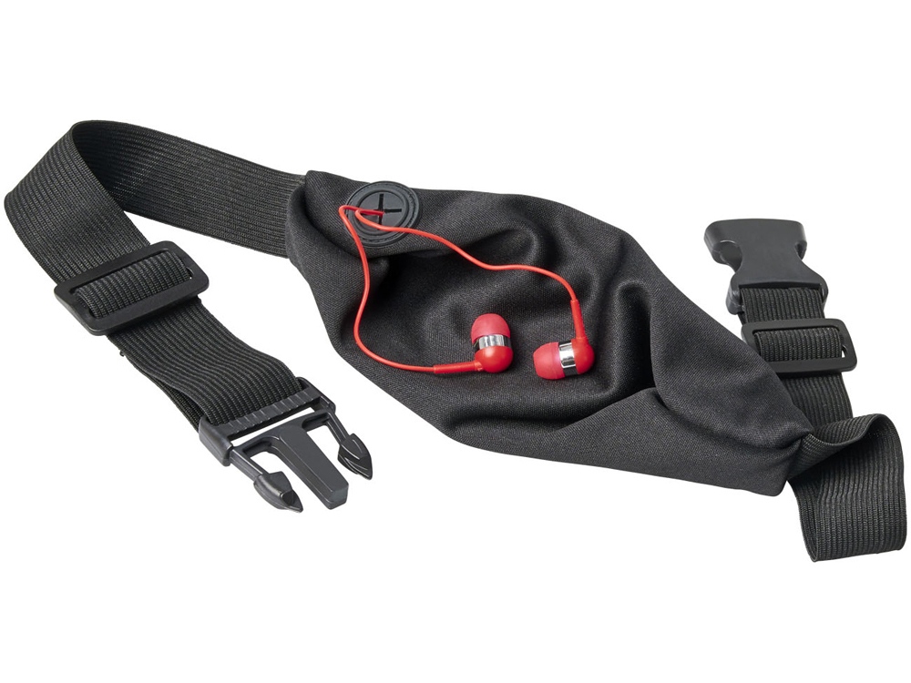 Эластичная спортивная поясная сумка с цветной застежкой-молнией и выходом для наушников. Ткань спандекс и эластичный пояс с застежкой-пряжкой обеспечивают гибкость во время тренировок и любых занятий на свежем воздухе. Большая зона для декорирования на передней части. Эластан.