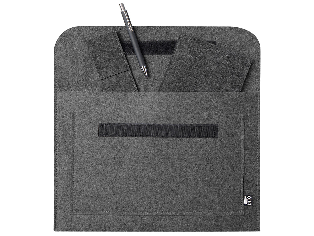 Стильный и функциональный набор для тех, кто ценит простоту и экологичность. В комплект входят: • Блокнот A5 в мягкой обложке из переработанного фетра, • Шариковая кнопочная ручка в бумажном корпусе с пластиковыми деталями, • Пенал для ручки из переработанного фетра, • Вместительный чехол для ноутбуков/планшетов до 14 из переработанного фетра, который служит упаковкой набора. Идеально подходит для офиса, учебы и путешествий. Лаконичный дизайн и натуральные материалы создают ощущение уюта и продуманности в каждой детали.