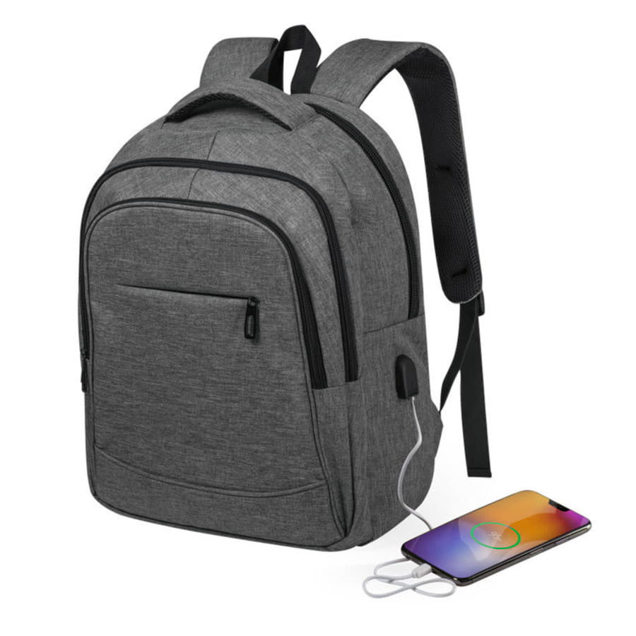 ·                 Два дополнительных отдела для хранения на молнии ·                 Наружный удобный карман на молнии  ·                 Внутри укрепленный отдел для ноутбука с защитной тесьмой на липучке ·                 USB разъем для подзарядки вашего устройства (внутри рюкзака расположен кабель для соединения с power bank) ·                 Боковой карман сетка  ·                 Эргономичные лямки и ручка рюкзака  ·                 Лямки прошиты дополнительными стропами в быстро изнашиваемых местах, которые можно отрегулировать по длине и зафиксировать пластиковыми крепежами ·                 Упаковка: прозрачный пакет