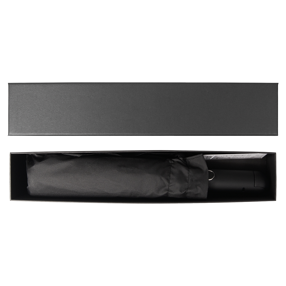 Упаковка: зонт упакован в элегантную черную подарочную коробку без логотипа, что делает его идеальным вариантом для подарка.