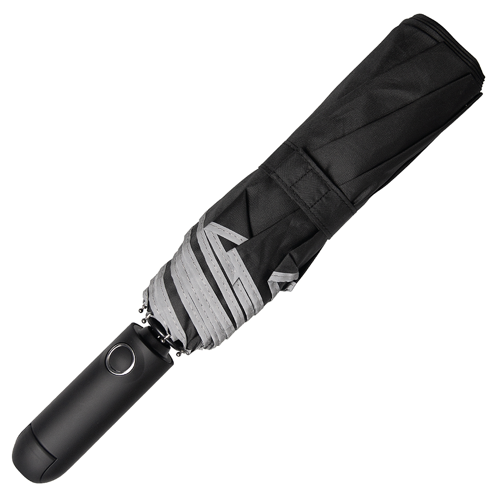 Этот зонт не только защитит вас от дождя, но и обеспечит дополнительную безопасность благодаря отражающей полосе и встроенному фонарику.