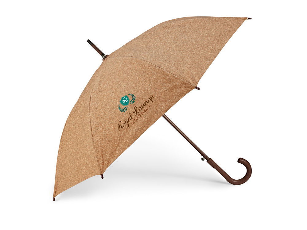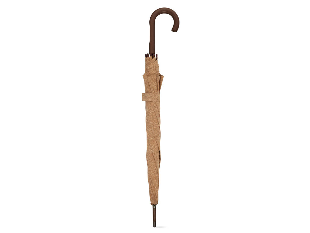 Полуавтоматический зонт-трость из натуральной пробки с деревянной ручкой.