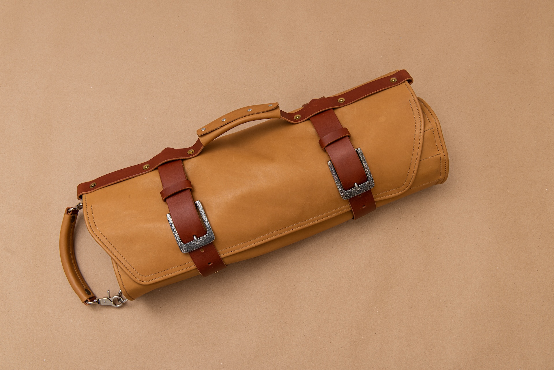 Особенный подарок ручной работы по эксклюзивной идее и реализации от нашего директора – кожаная скрутка-набор для гриля! При производстве были учтены все нюансы, ошибки и недочеты личной боевой скрутки, которая путешествует с ним много лет.