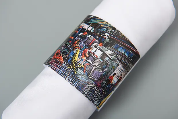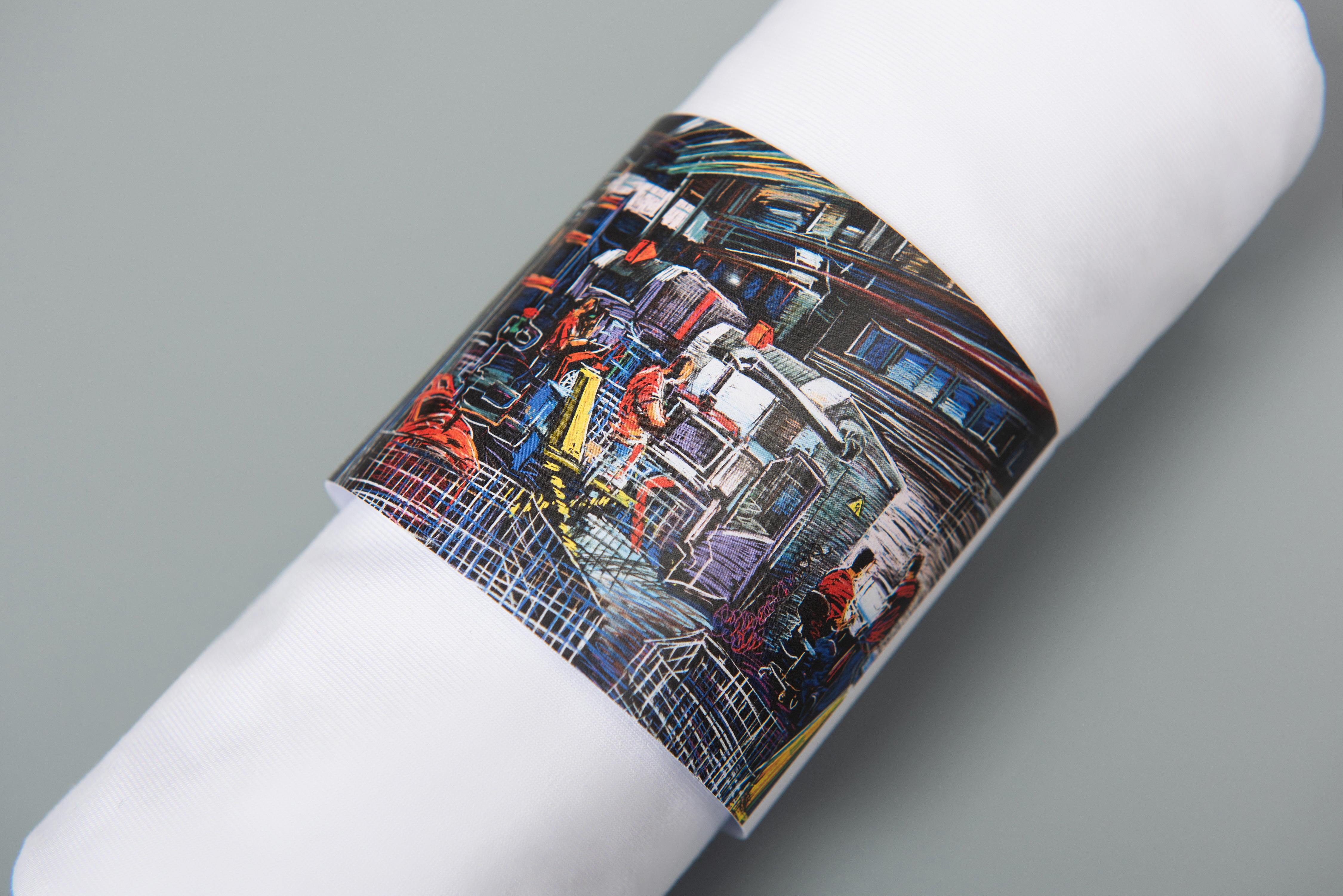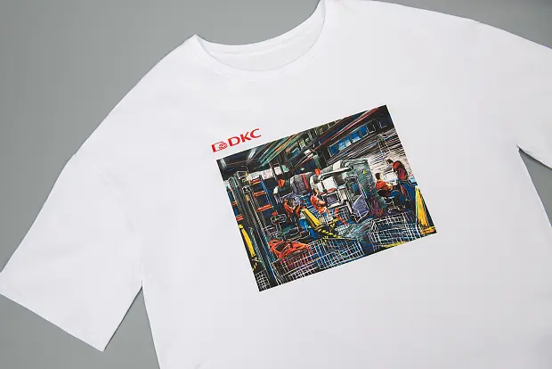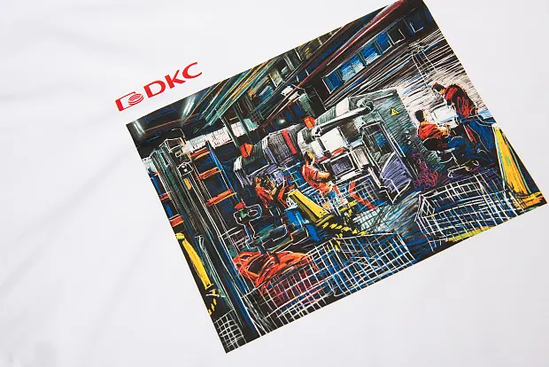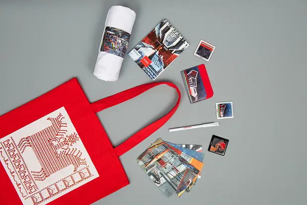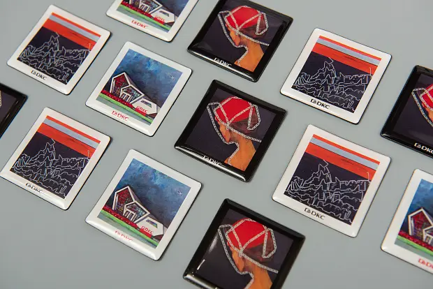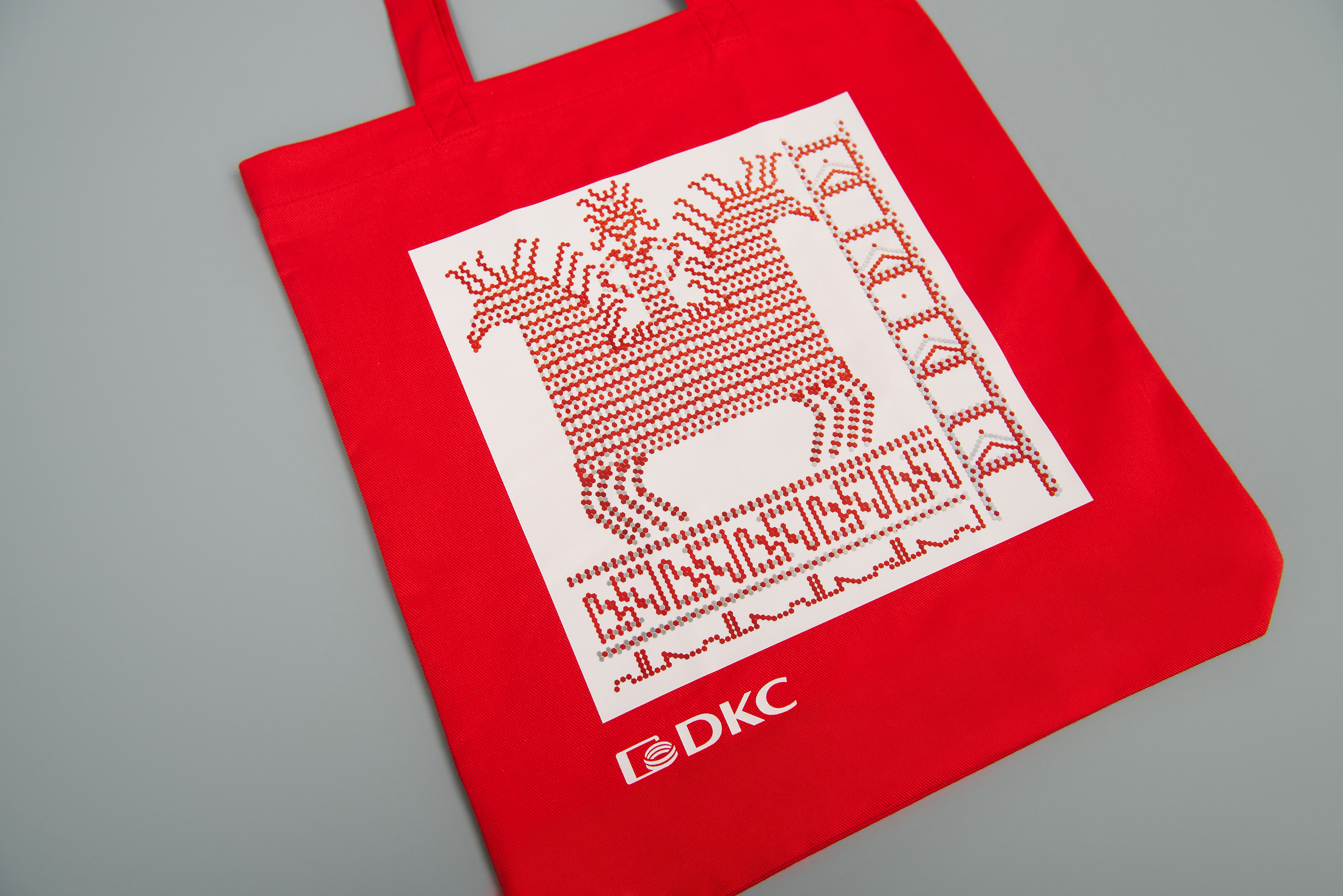Для компании ДКС мы подготовили сет мерча для мерчшопа. Мерчшоп — это фирменный магазин, в котором собрана брендированная продукция компании. В дизайне товаров использовались картины художников, на которых изображено производство.